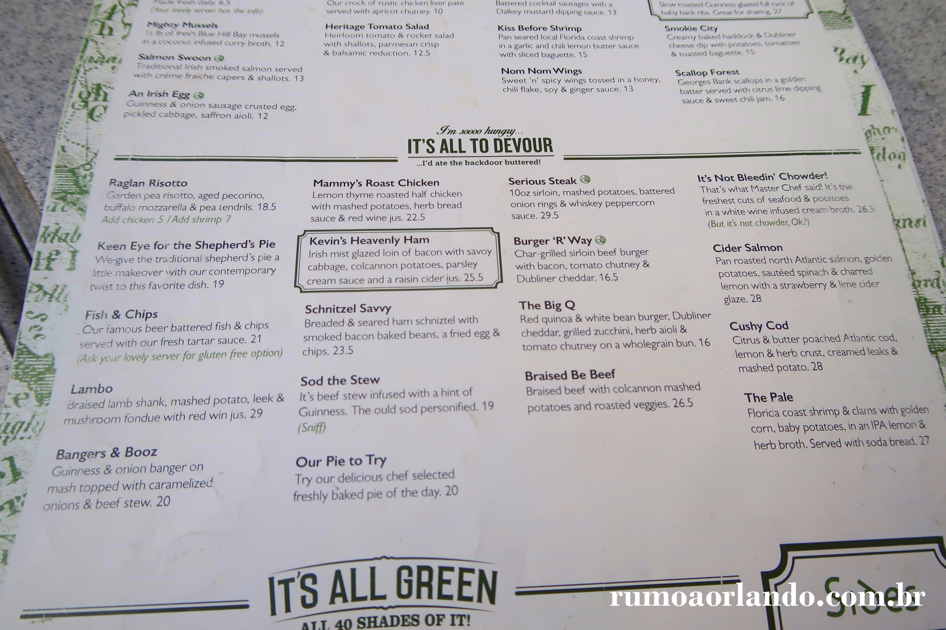 Este é o restaurante mais indicado para comemorações do St. Patrick's Day em Orlando. A celebração acontece anualmente, em 17/03. Os americanos levam a sério a festa (que celebra a morte de São Patrício, padroeiro da Irlanda), se vestem de verde e branco e vão para as ruas "bebemorar". :)
