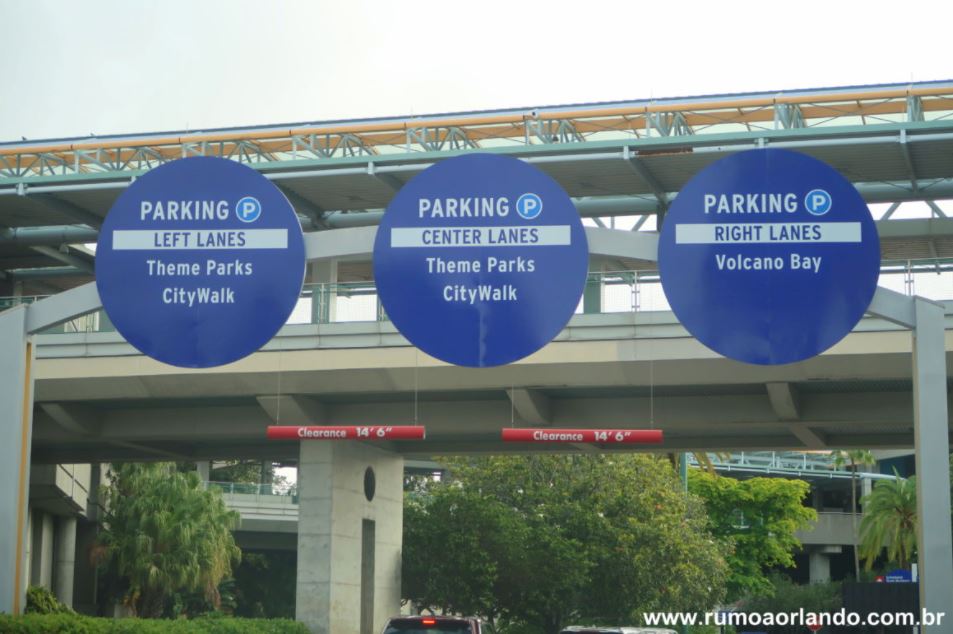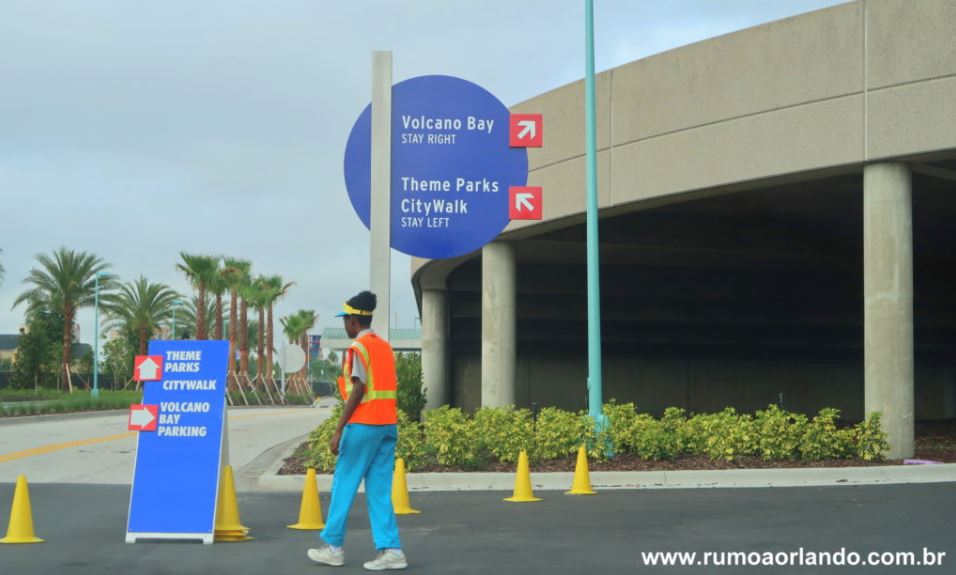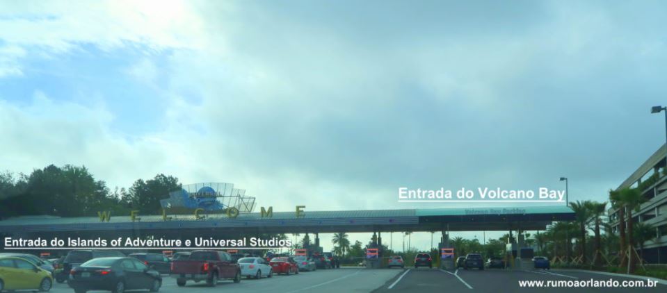 Ao chegar ao local, fique atento: apesar de ser a mesma entrada para todos os parques, não são as mesmas guaritas de estacionamento. Do lado esquerdo, estaciona quem vai para Universal e Islands. Do lado direito, quem vai para o Volcano.
