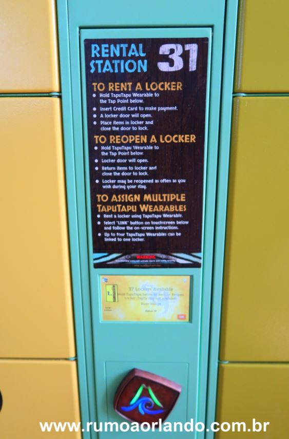 Há também o aluguel de Lockers (armários). Há três tamanhos de armário: o pequeno custa U$ 8,00, o médio custa U$ 10,00 e o grande custa U$ 15,00. Os valores são fixos, independente do tempo de uso. É por dia e não por hora.