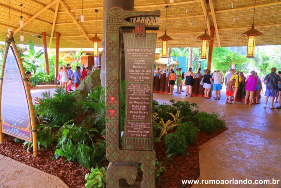 Neste local são distribuídas as pulseiras Tapu Tapu (falaremos adiante delas) e há também medidores para saber as exigências de altura de diversas atrações.