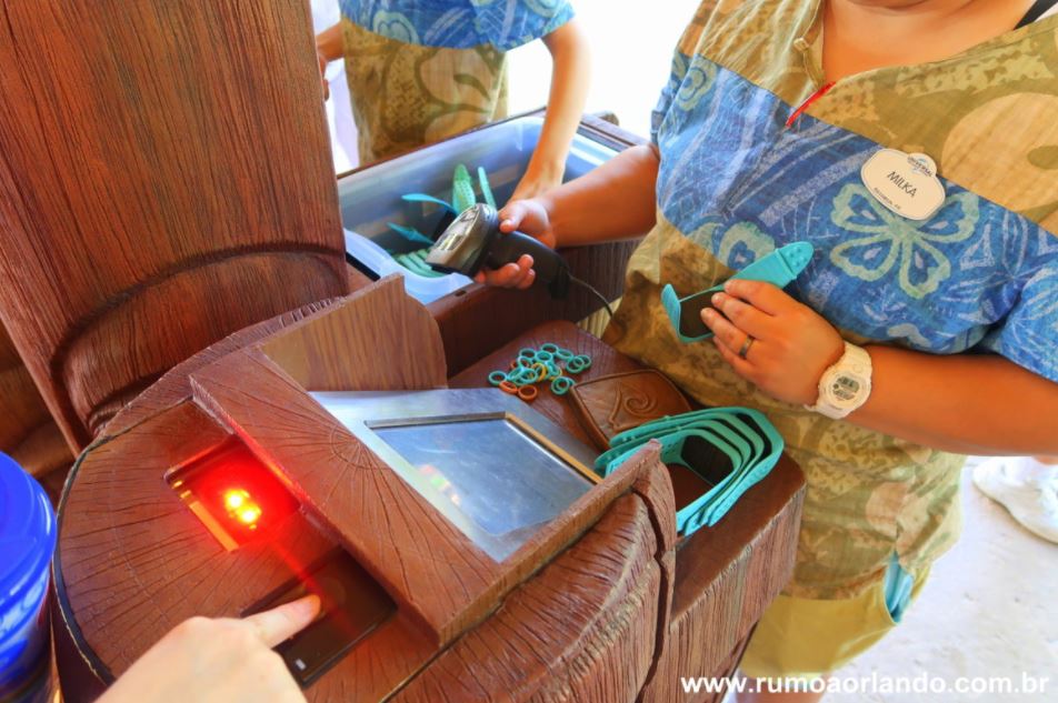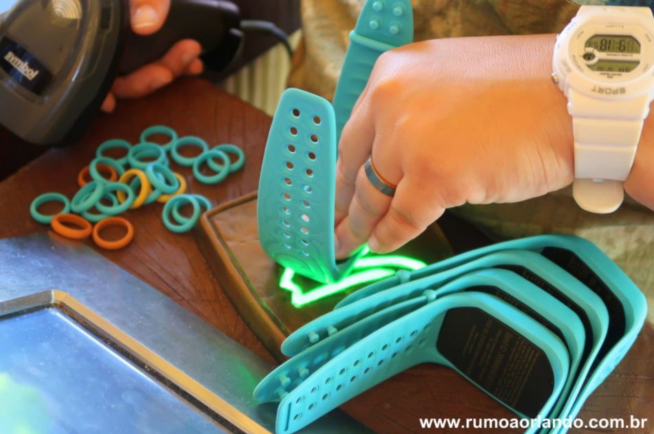 Quando recebemos a pulseira, somos questionados se sabemos utilizá-la. Se sim, basta seguir adiante e entrar no parque. Caso negativo, os funcionários explicarão o uso.