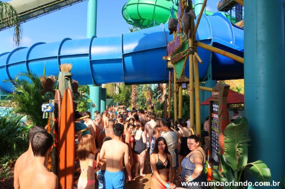 Quando estiver montando o seu Roteiro Volcano Bay, evite colocar o parque nos finais de semana, especialmente no verão, que é quando os residentes visitam mais o parque e acabam deixando ele bem cheio.