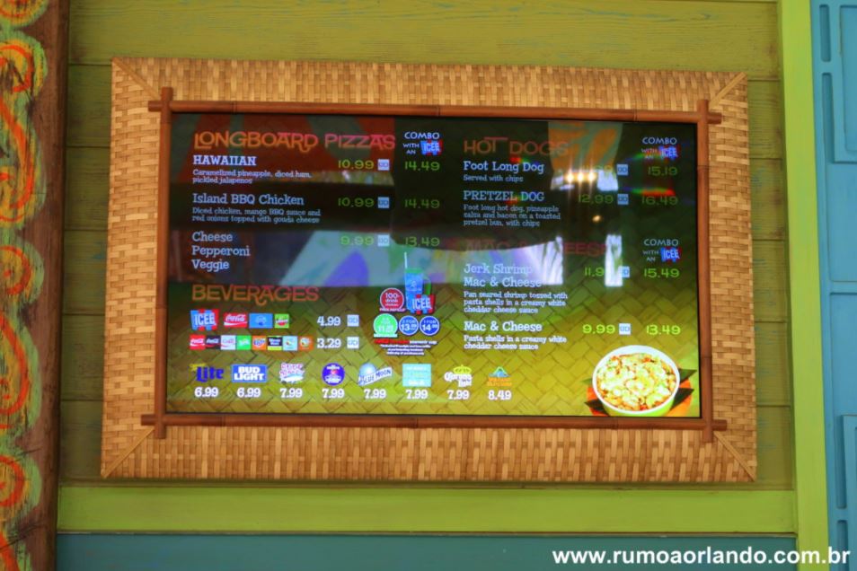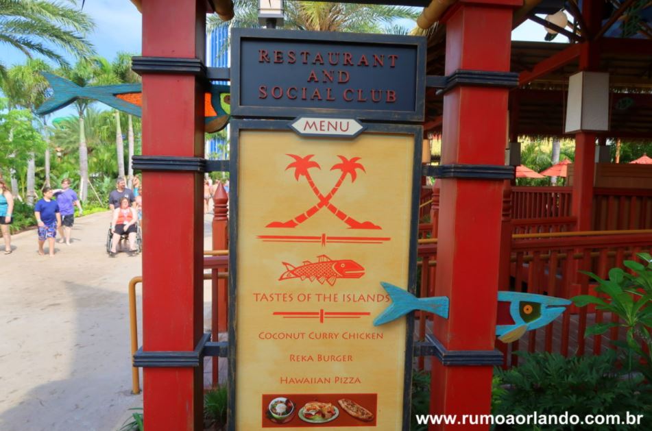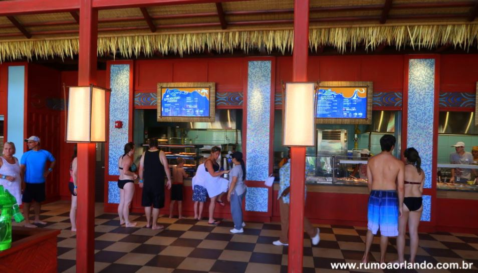 - Kohola Reef Restaurant & Social Club - Este foi o nosso escolhido por oferecer variedades de frango, costelas ao molho barbecue, pizzas e hambúrgueres, bem como "comida de verdade", como arroz, purê de batata e vegetais. Ele é o mais próximo da entrada do parque e você pode conferir o menu completo clicando aqui. É uma ótima pedida para incluir em seu Roteiro Volcano Bay.
