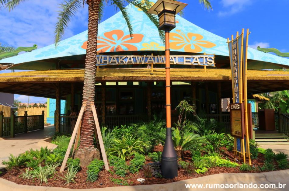 - Whakawaiwai Eats - Serve saladas elaboradas, pizza de frango ao molho barbecue e pizzas de sabores normais. Achamos o restaurante mais bonito do parque e muito bem decorado, porém, como o cardápio não fazia muito o nosso gosto, não optamos por ele. Você pode conferir o menu completo dele clicando aqui.