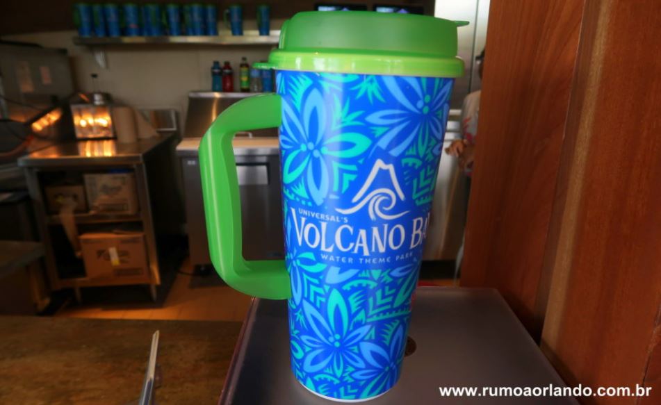 E, por falar em refil, aproveitamos para mencionar que o Volcano Bay não oferece pipoca, por isso, o balde de refil usado nos outros parques do grupo não têm serventia no parque aquático.