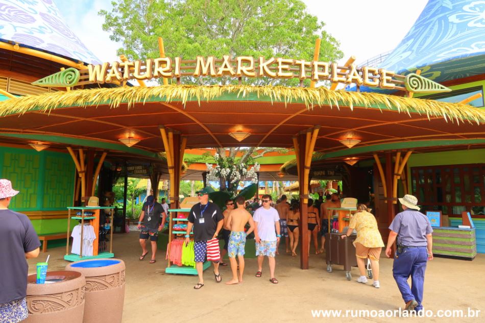 Existe uma grande loja principal, a Waturi Marketplace, e diversos outros quiosques espalhados pelo parque.