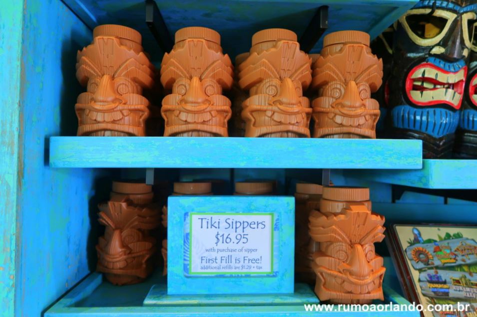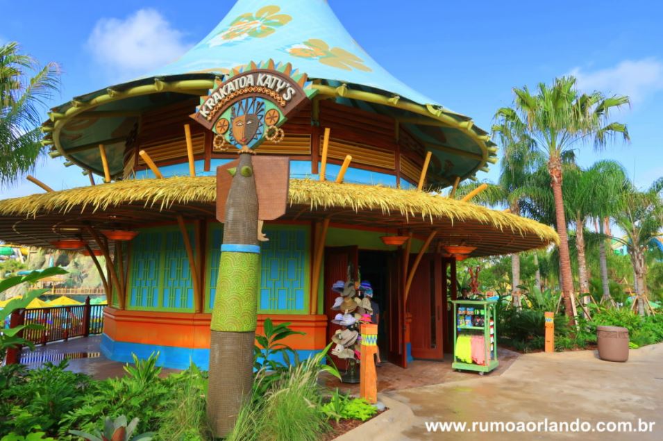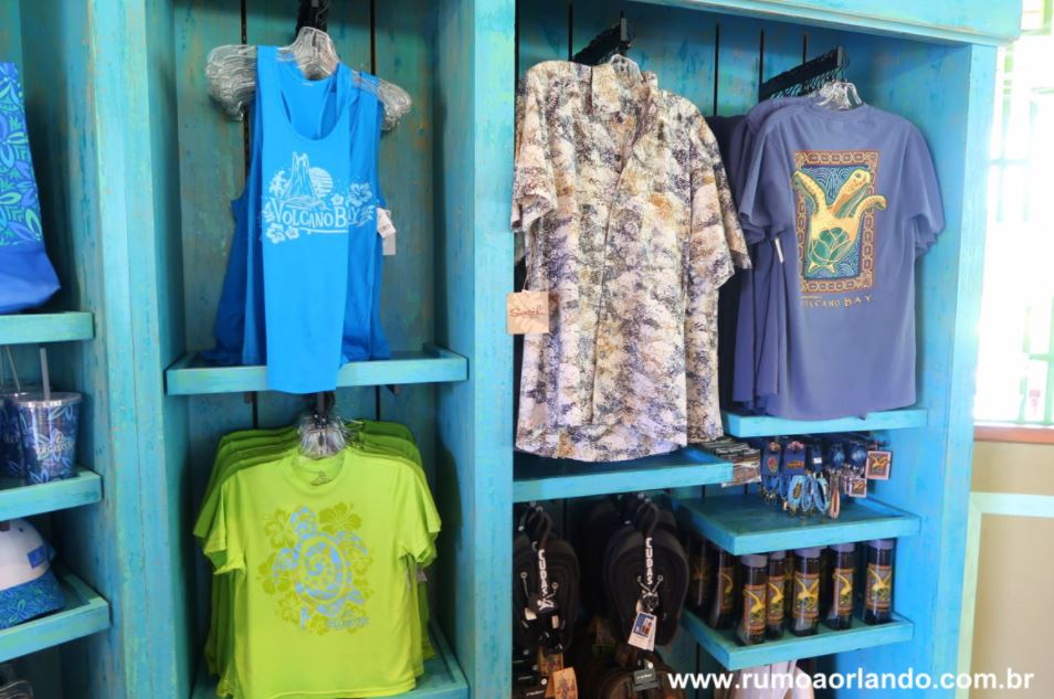 Na loja, você encontra de tudo: roupas, saídas de praia, chinelos, itens de decoração, dentre uma infinidade de produtinhos. Já nos quiosques são itens mais específicos para uso no parque, que você pode vir a precisar no meio do dia, por exemplo: calçados para proteção do pé, protetor solar, óculos de piscina, toalhas, dentre outros. A visita à lojinha também não pode faltar em seu Roteiro Volcano Bay, pois sempre podemos encontrar uma lembrança legal do parque por lá.