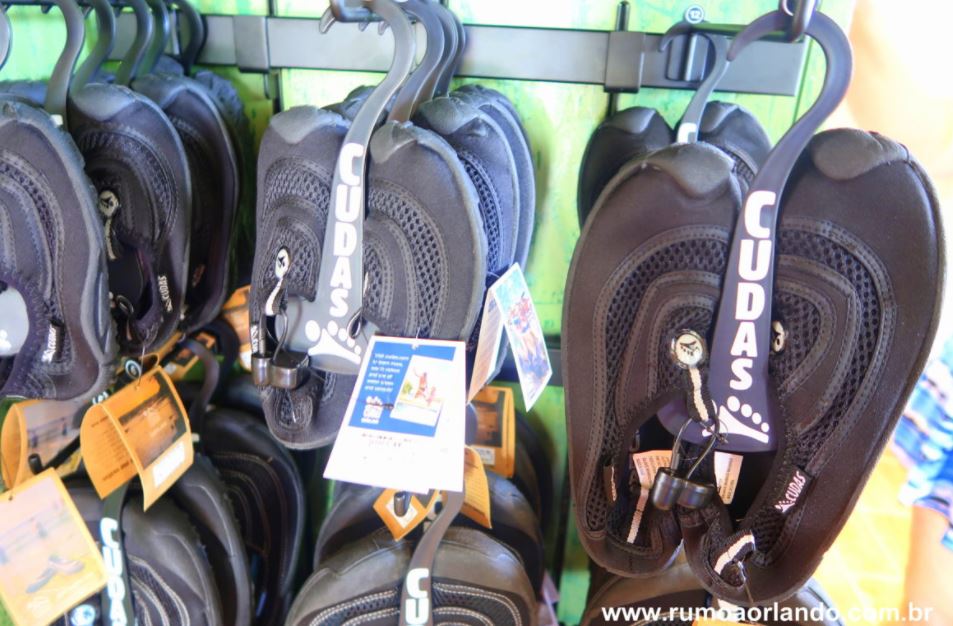 Para os pés, a grande maioria das pessoas fica descalça o tempo inteiro, mas, na nossa opinião, isso é ruim por dois motivos: você pode pisar em algo sem querer e se machucar e, além disso, se estiver um dia de muito sol, será preciso ficar fugindo para sombras ou molhando os pés nos esguichadores de água espalhados pelo parque para evitar queimaduras.