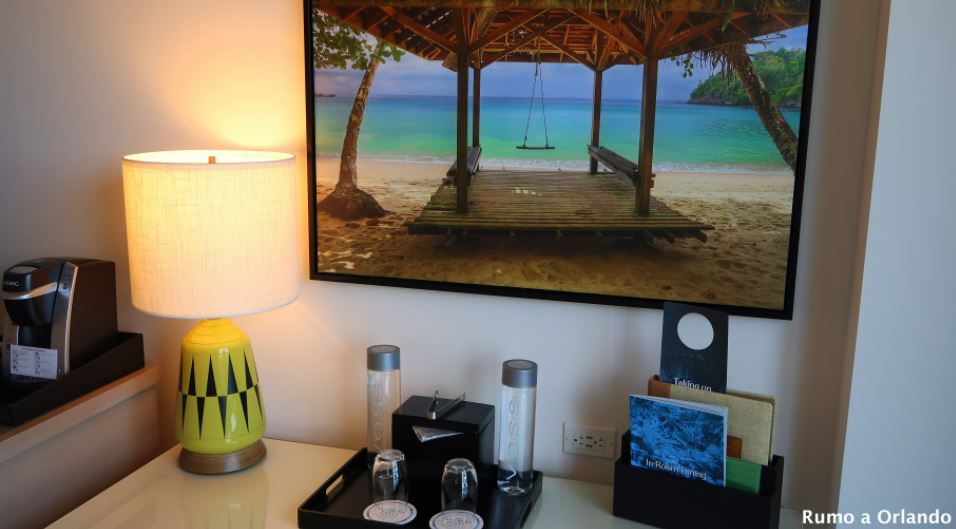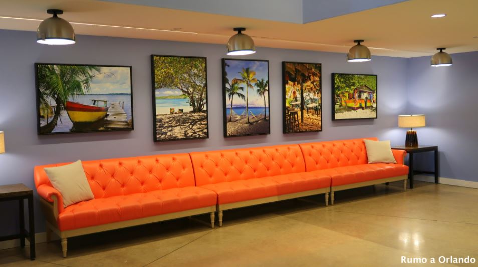 O hotel é todo inspirado nos rios e cachoeiras pitorescas do Caribe, então, há muita influência praiana por todo o hotel. Ele é bastante casual e descontraído.