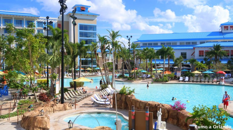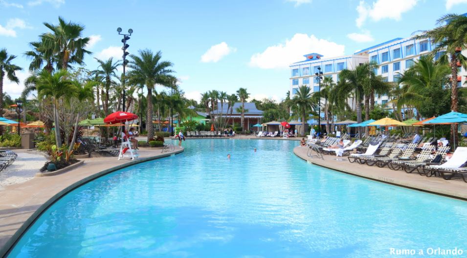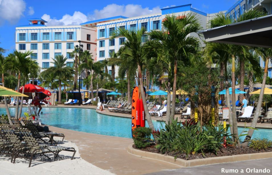 Mesmo sendo um hotel voltado para o público adulto, ainda é possível ver algumas famílias com crianças, mas não é o hotel ideal para elas, na nossa opinião. Se você tem pequenos viajando junto, o melhor é ficar no Cabana Bay.