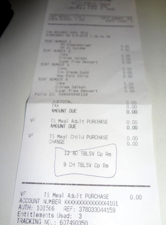 Para quem tem o Disney Dining Plan, o Plano de Refeições da Disney, gasta-se 01 crédito de Table Service por pessoa no Sci-Fi Dine In Theater. As taxas já são incluídas no plano de refeição, porém, as gorjetas não. Então, você pode olhar na nota fiscal qual o valor deverá ser disponibilizado em dinheiro (15%, 18% ou 20%), assim como pode olhar os créditos remanescentes no seu plano (destacados na foto abaixo).