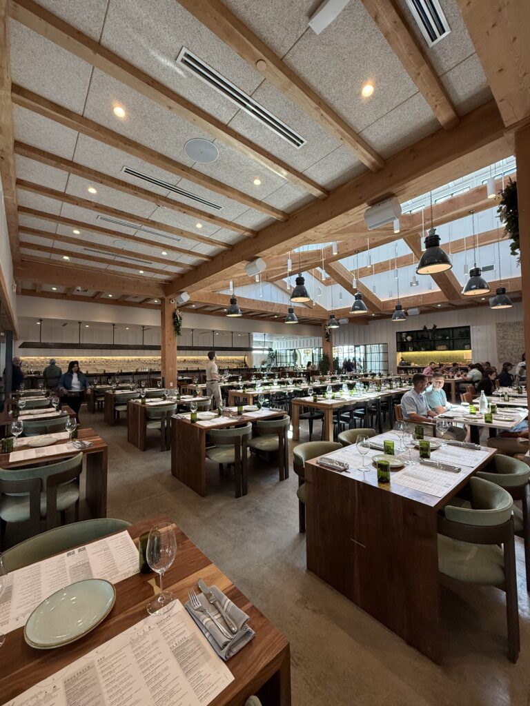 São vários espaços divididos, o que faz com que o Sixty Vines seja ótimo para celebrar aniversários com grupos grandes. No dia da nossa visita, por exemplo, havia um grupo comemorando aniversário dentro do salão que dá vista para o lago. Estava um dia lindo, então, é o lugar perfeito para ir fora de parques em uma situação como esta.