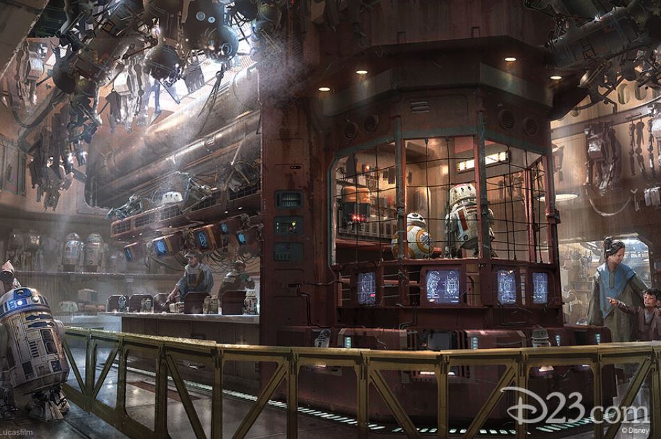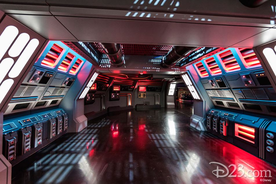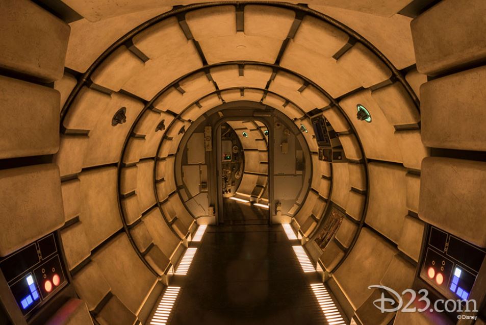 Há duas entradas diferentes para a Star Wars Land e ambas são uma espécie de corredor estreito (assim como acontece no Beco Diagonal, no Universal Studios), para que tenhamos a sensação de grandeza da área ao sair deste corredor. Este impacto serve também para nos fazer ter a certeza de que estamos mudando de área dentro do mesmo parque.