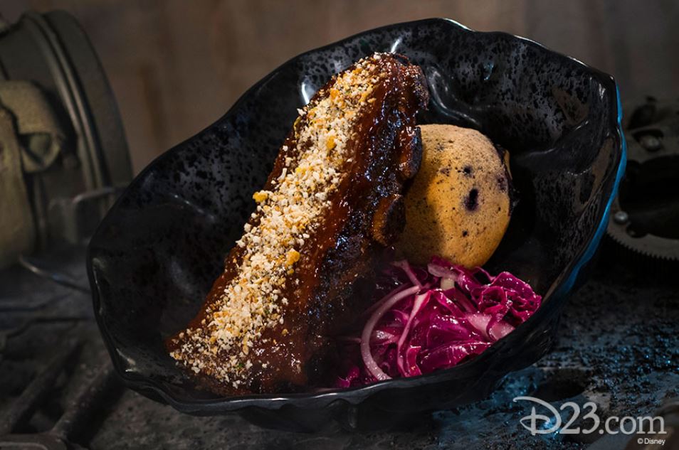 Smoked Kaadu Ribs: costela de porco com muffin de blueberry e milho e repolho.