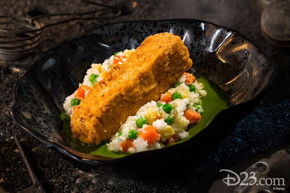 Fried Endorian Tip-Yip: frango com purê de vegetais e molho.