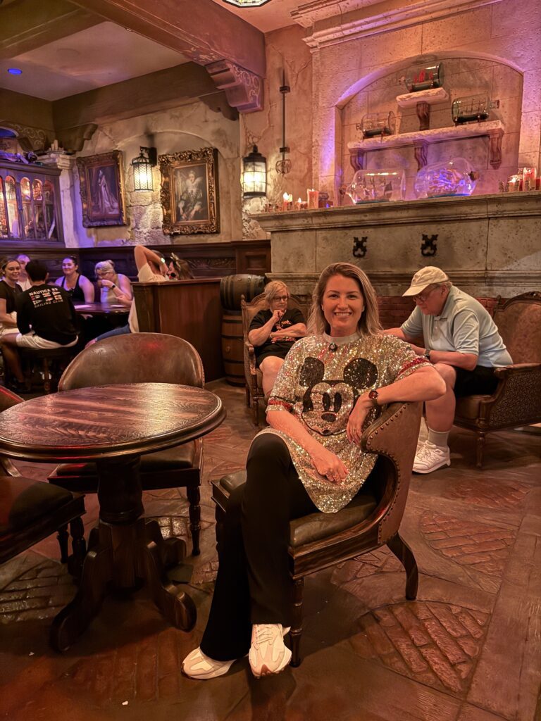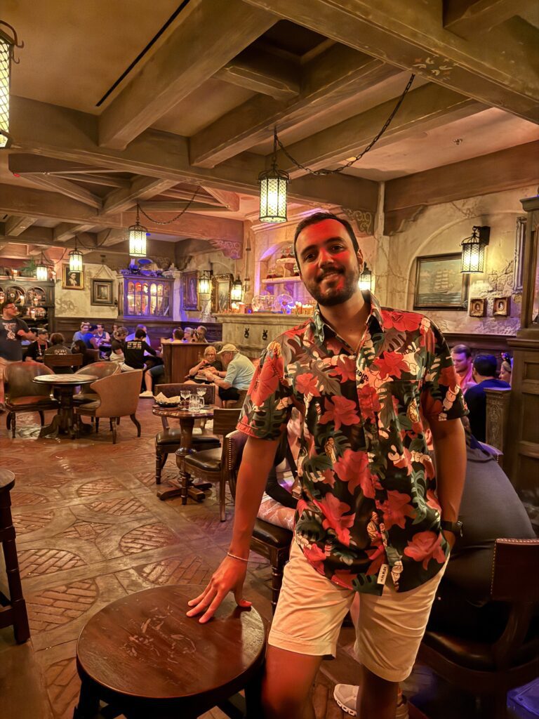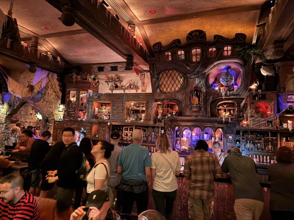 Ele nos lembrou muito o Oga’s Cantina (lounge de Star Wars no Hollywood Studios) e o Haunted Mansion Parlor (lounge da Haunted Mansion no navio Disney Treasure), sendo um espaço bacana para tomar um drink, comer um belisco rápido, conversar um pouco entre amigos e voltar para curtir o parque.