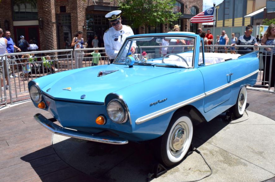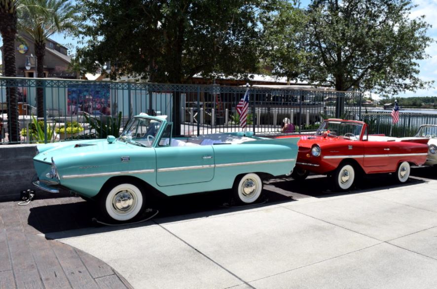Os carros-anfíbios (em inglês, Amphicars) são a sensação do restaurante. Tratam-se de carros feitos para andar tanto no asfalto como na água. Eles acomodam até 03 adultos ou 02 adultos e 02 crianças pequenas.