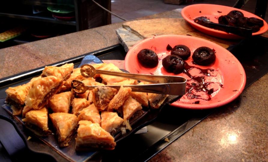 Nos balcões de comida há de tudo: carnes, frangos, peixes, saladas, tabule, pães diversos, arroz e feijão doce (bem temperados ao estilo americano) e mais algumas iguarias africanas. É possível que achem as comidas um pouco diferentes, mas são bem saborosas, principalmente, as sobremesas. ?