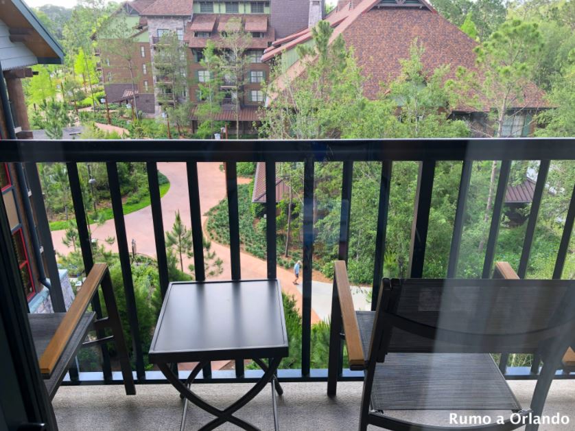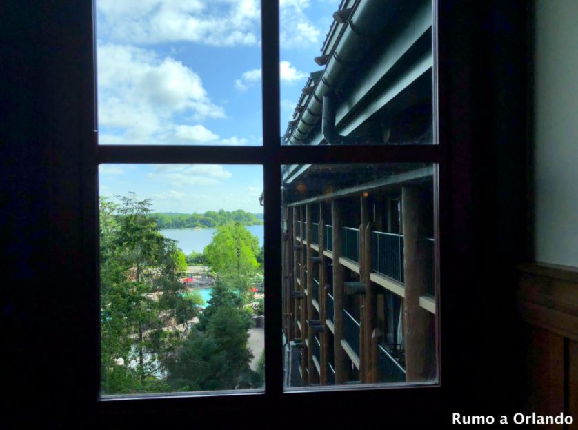 Categoria Cabana: quartos com vista para o Bay Lake, que é o lado que circunda o Magic Kingdom. Dependendo da localização da cabana, é possível ver os fogos da varanda.