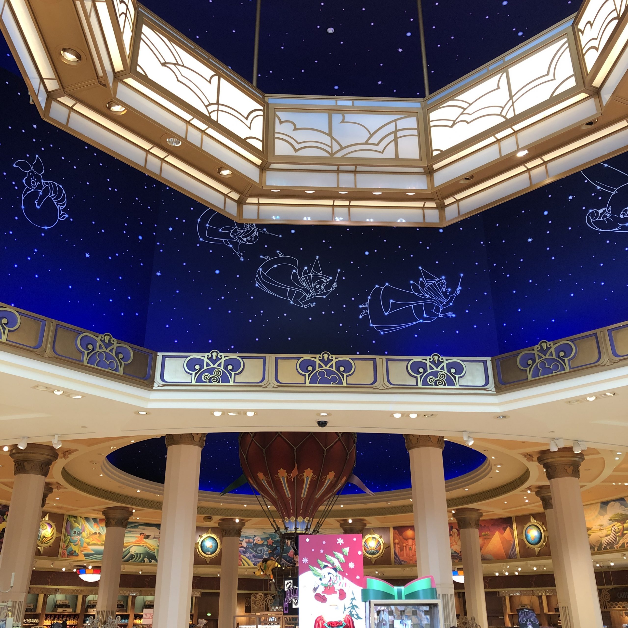 A decoração da World of Disney de Paris é um espetáculo à parte. Tudo é muito lindo, magia Disney espalhada por todos os lados, principalmente no teto. Cada detalhe é impecável!